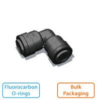 Q0620526BV: 3/8'' Tube x 5/16'' Tube Union Elbow - Black w/ Fluorocarbon O-rings